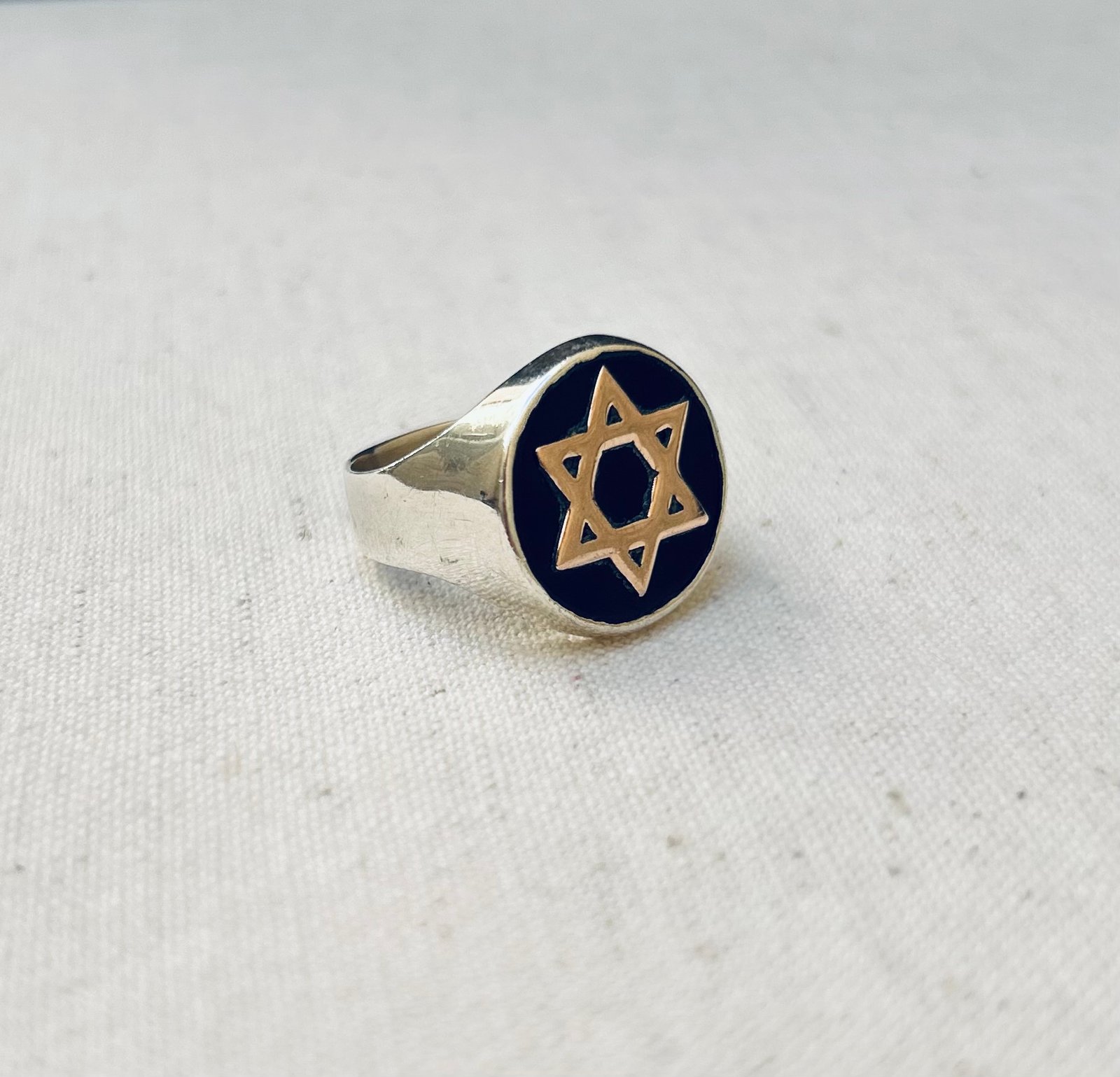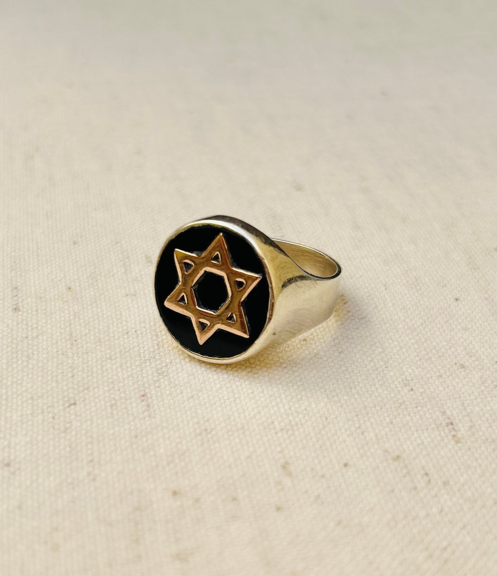 Anillo de plata y ónix, dije de oro 10k