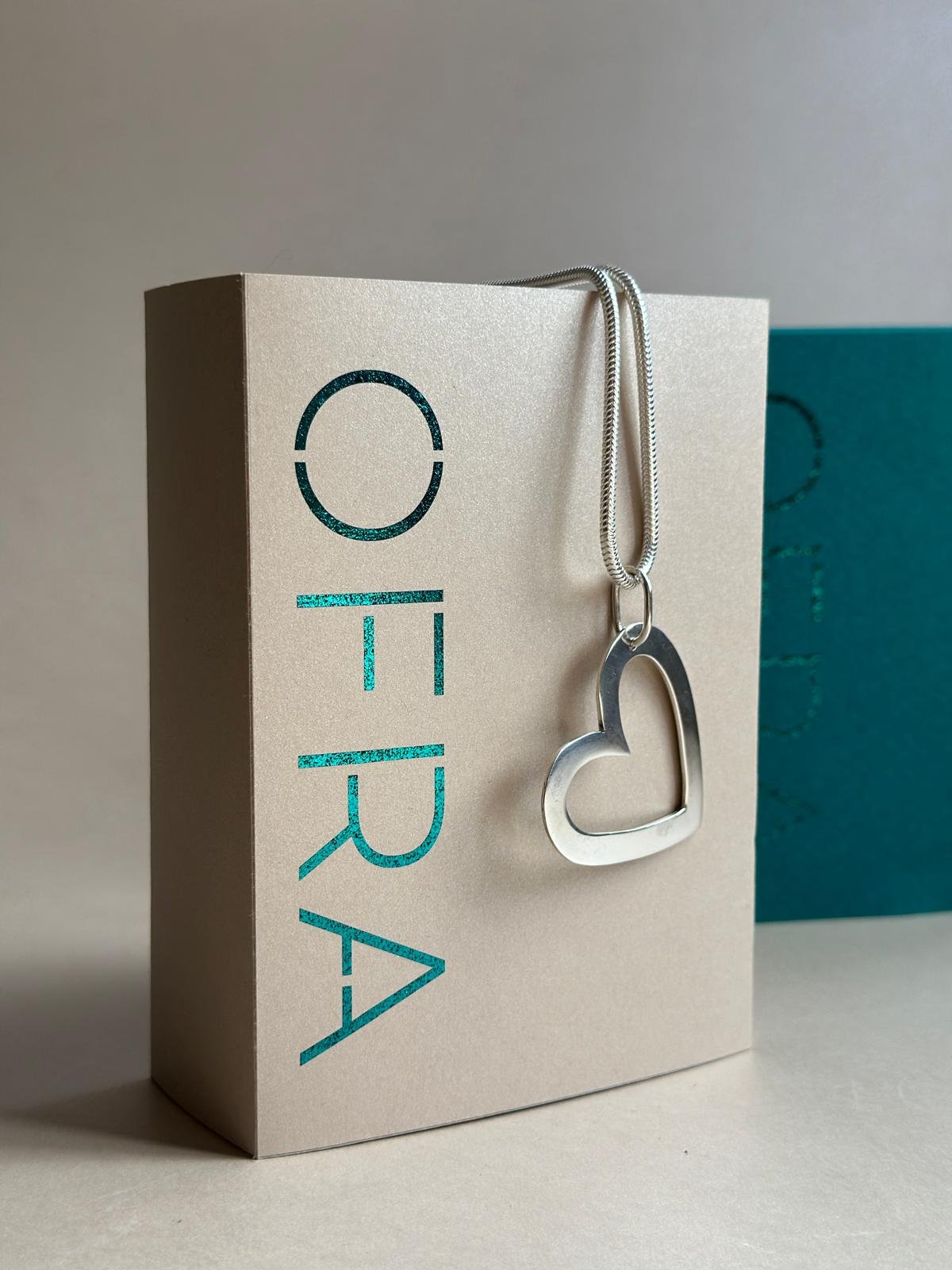 Dije de plata en forma de corazón hueco con cadena fina. Un accesorio delicado, elegante y atemporal para acompañarte todos los días.