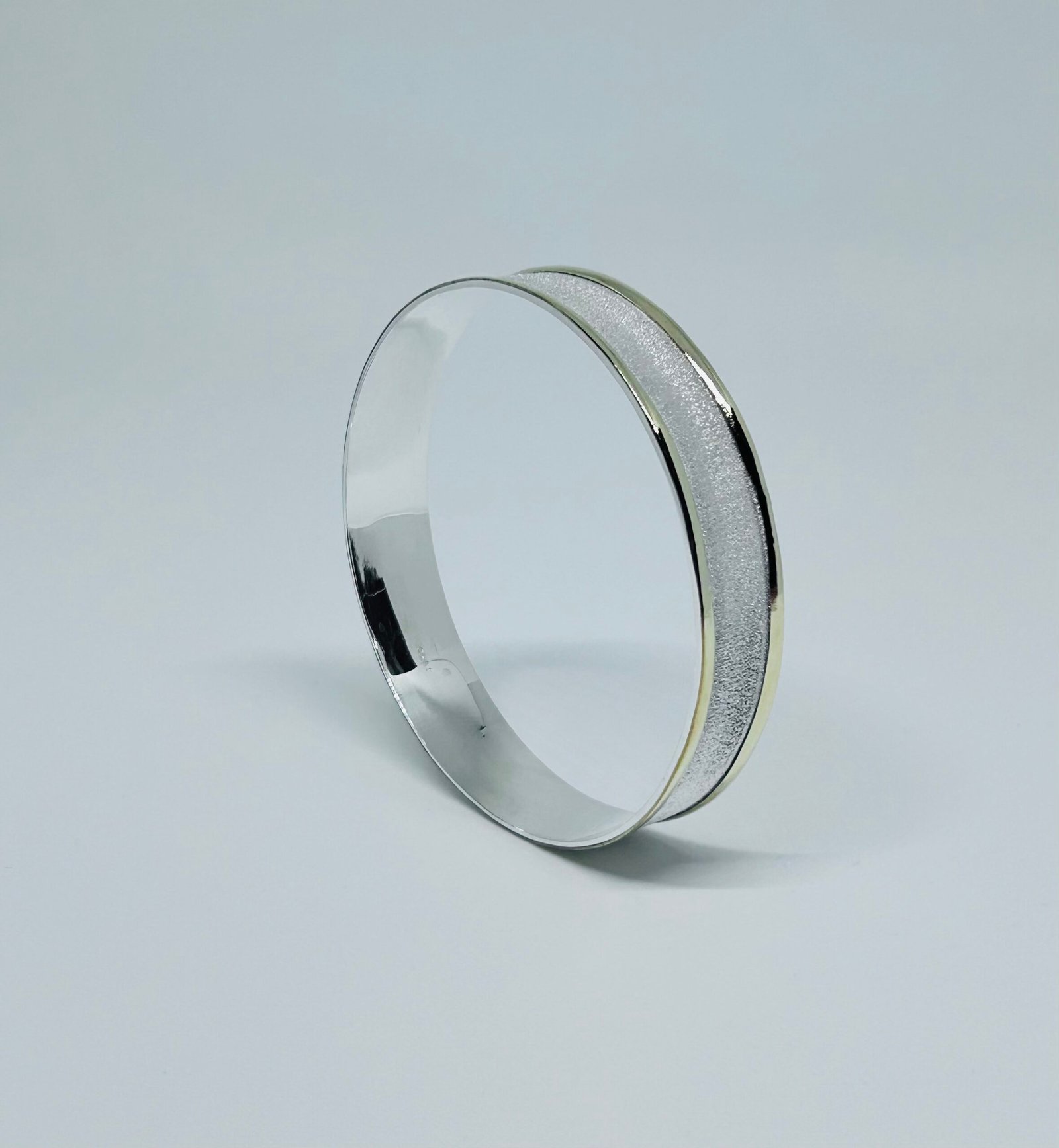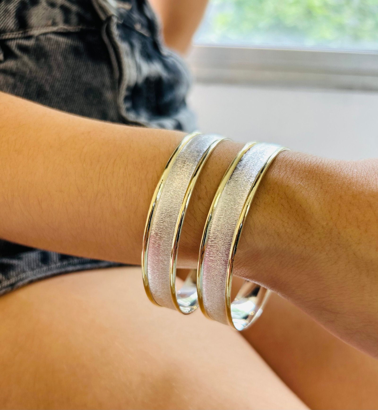 Elegancia y calidad artesanal en una esclava de plata 925 con delicados apliques en oro 18k.
