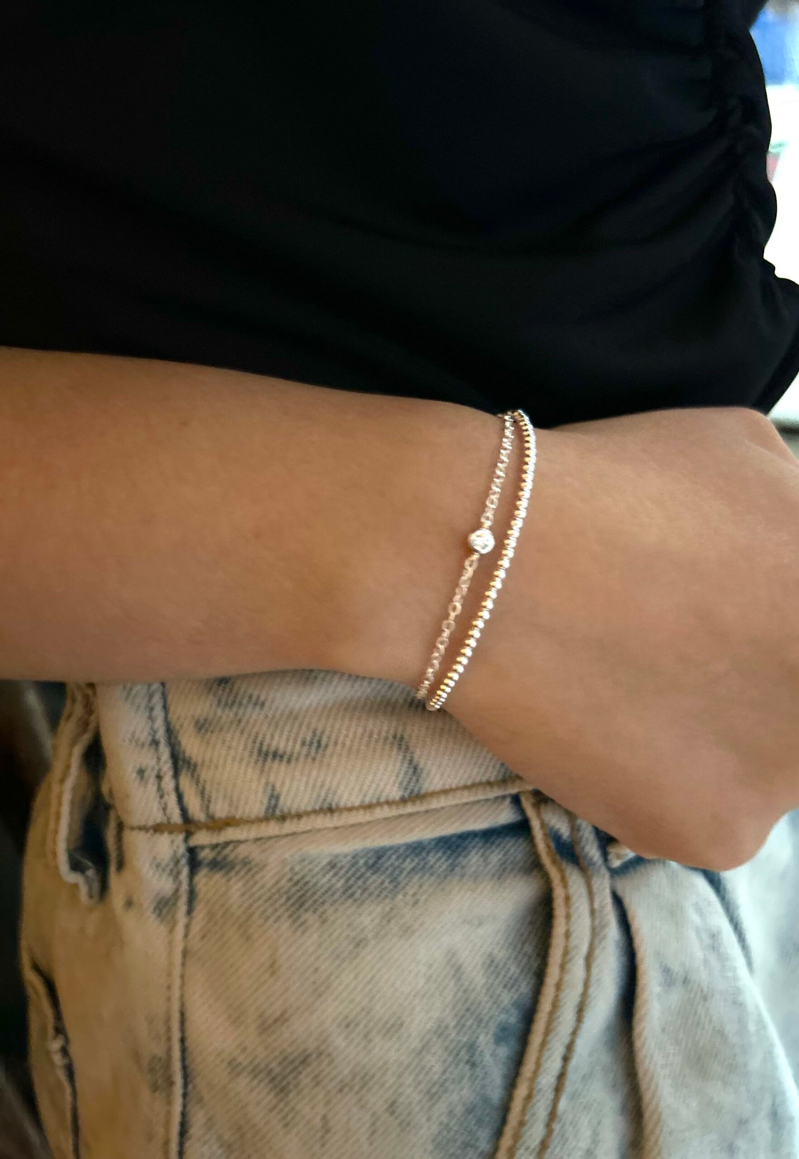 Pulsera de plata doble, mitad esferas y mitad esferas con 1 circonia